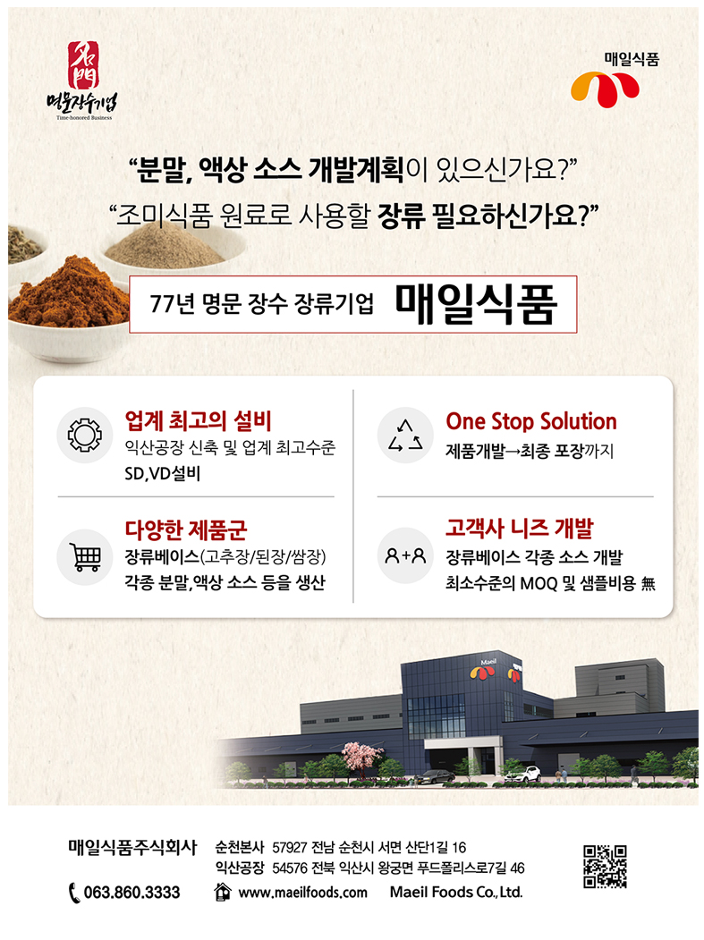 장류를 넘어 한식조미식품 소재와 한식소스 세계화로 도약하겠습니다.